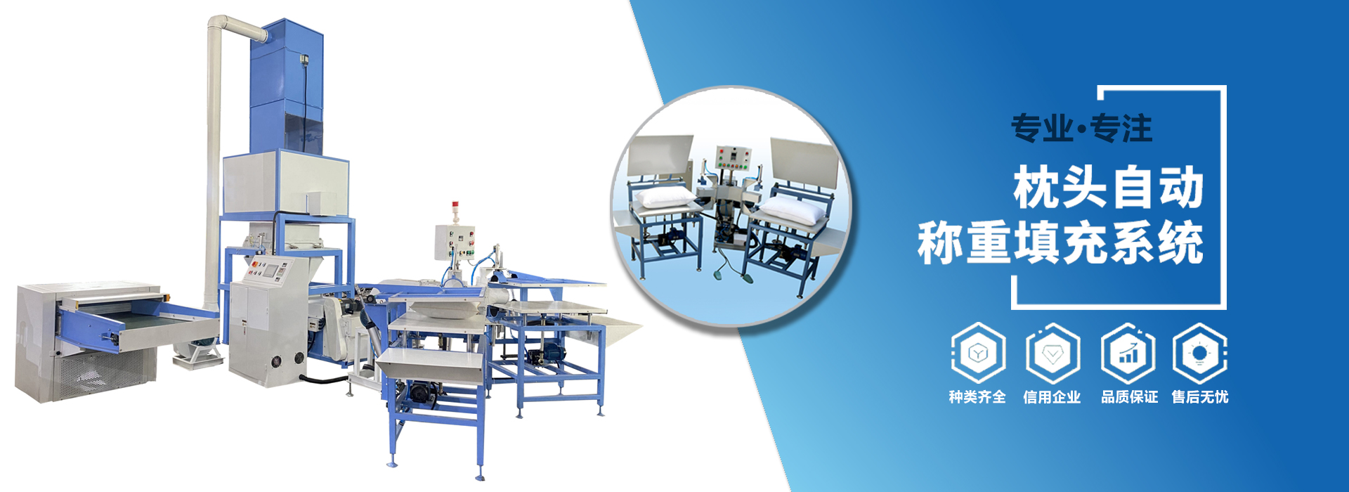 采用高速電腦控制系統,整套設備可完成纖維棉開松,稱重,均勻快速填充入袋三道工序,主要用于枕頭或沙發軟墊的纖維棉定量填充。